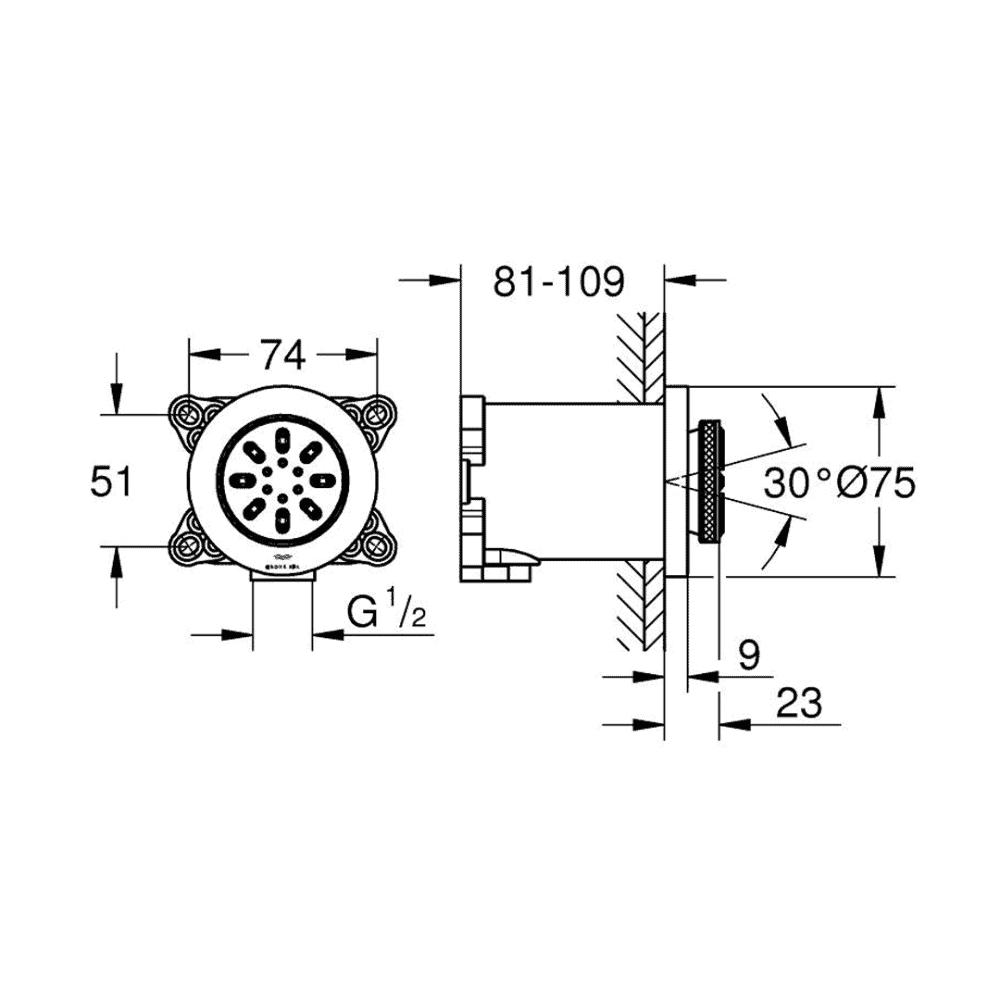 المزيد من البساطة مع جيت دائري كروم من خط اكوا من جروهى. مصمم خصيصا للحمامات العصرية التي تجمع بين الأناقة والوظائفية. يمثل مزيجاً مثالياً من الجمال والأداء. مصمم ليناسب جميع أنماط الديكور الحديثة والكلاسيكية.