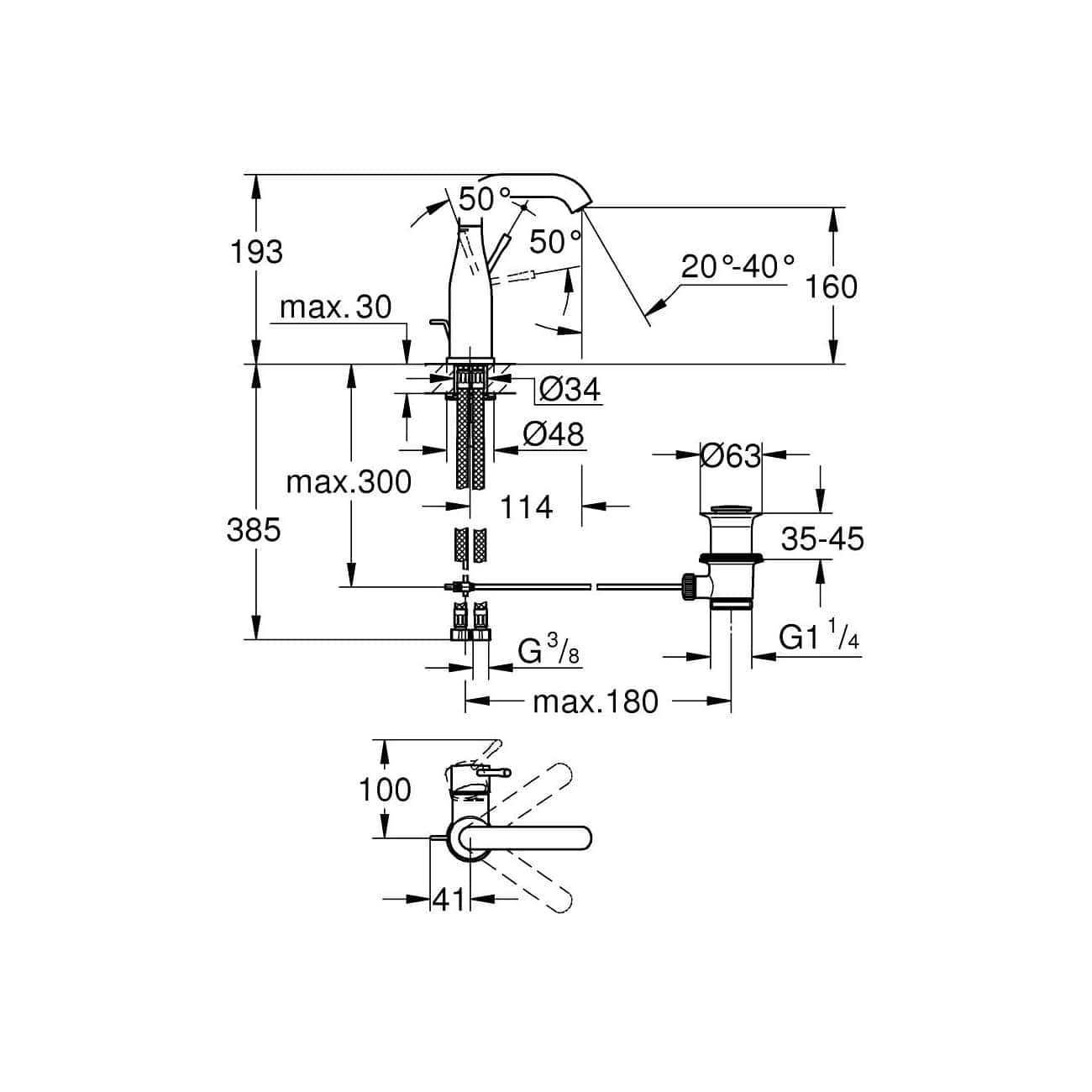 خلاط حوض جروهي نيو ايسانس 1 فتحه مرتفع مقبض من الجانب هاند مكسر بالطابق كروم 24174001 - 32628001