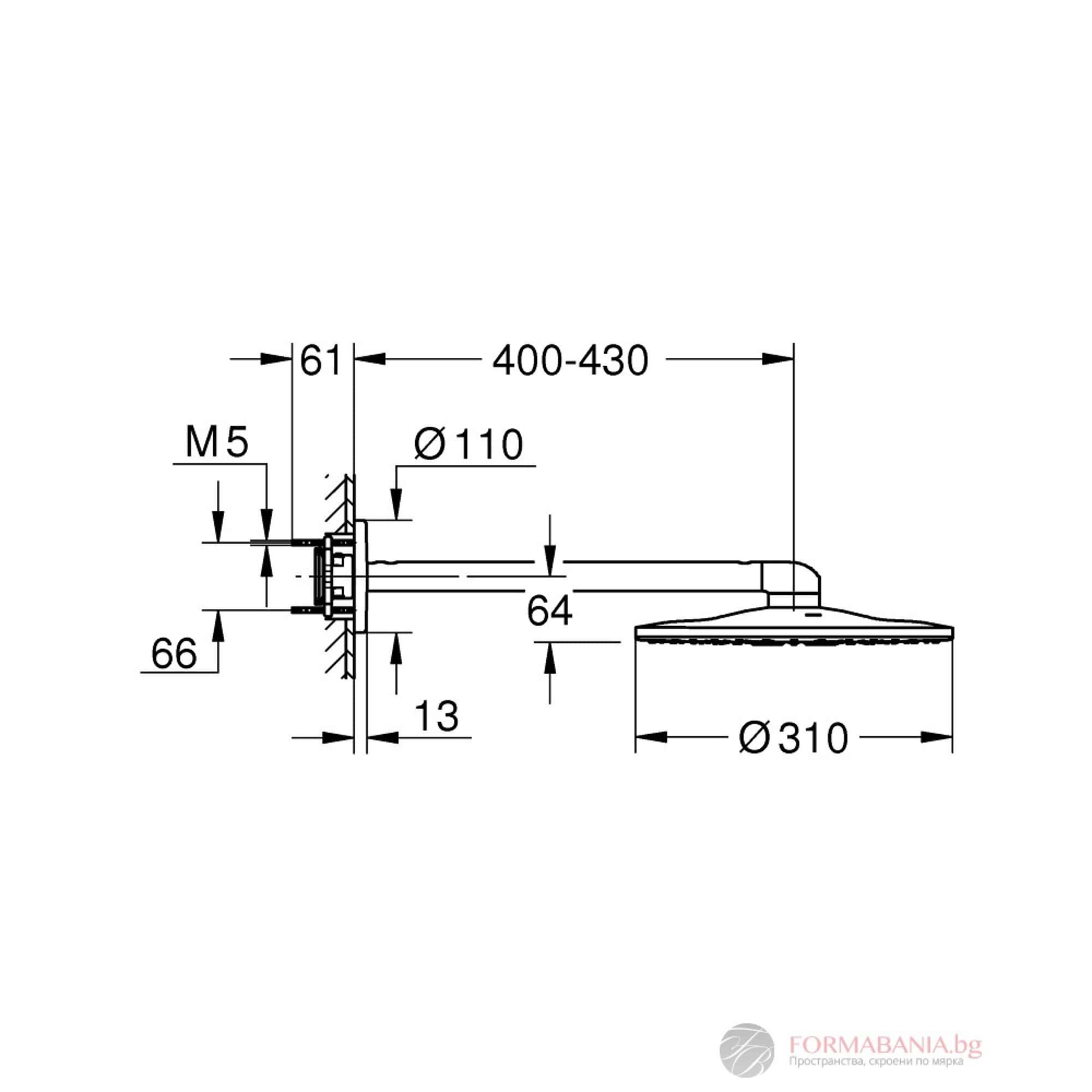 طاسة شاور جروهي راين شاور 31 سم دائرى 2سرعه بالماسورة 40سم اسود 22123KF0