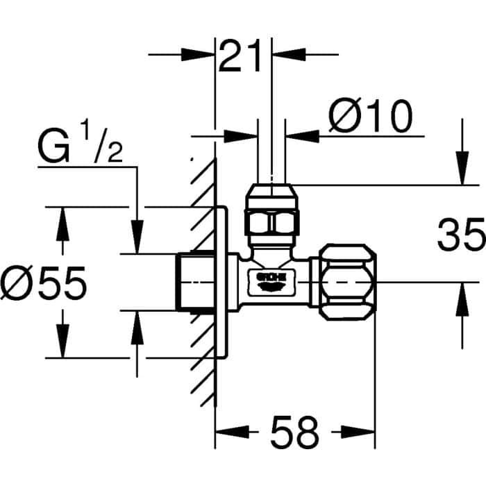 محبس زاوية جروهي ۱/۲ بوصة كروم 22041001