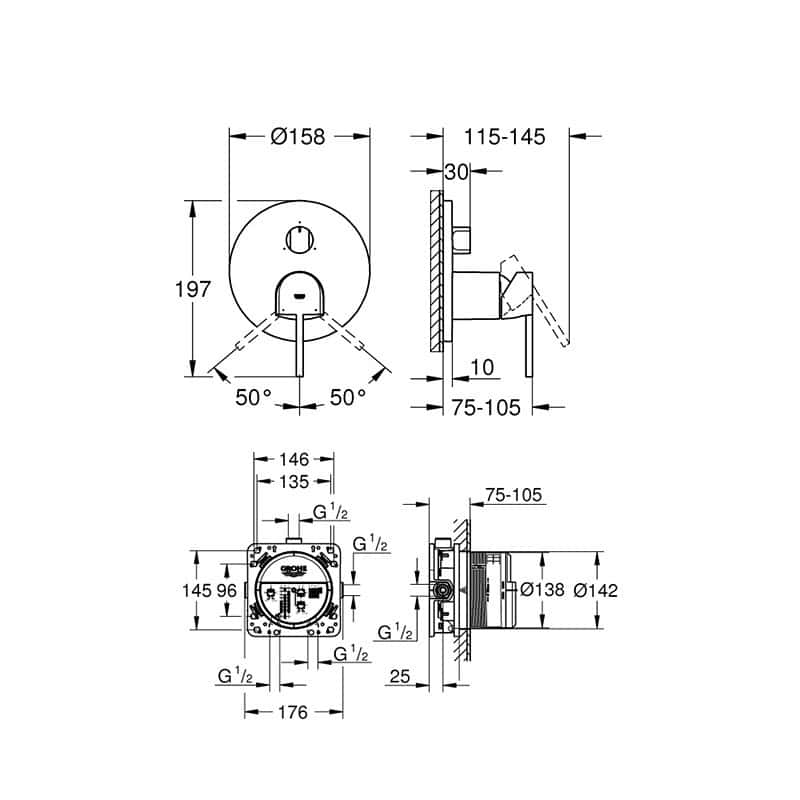 خلاط بانيو دفن ثلاثي بمحول كروم من خط جروهى بلس جروهى يضفي لمسة ديكورية ة على حمامك. يوفر التوازن المثالي بين الأناقة والفعالية. مصمم لتوفير تجربة مستخدم ممتعة ومريحة.
